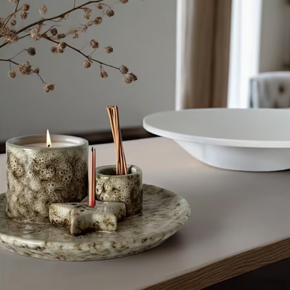 Made of high quality ceramic, this incense holder stands out for its heat resistance, stability and natural stone-effect finish, which provides an organic and relaxing aesthetic. Its 3-in-1 structure allows for versatile use: it is suitable for stick incense, cone incense and small candles, adapting to different moments and spiritual needs.