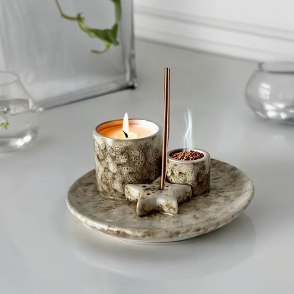 3 in 1 Ceramic Incense Holder for Meditation, Yoga and Spiritual Decoration