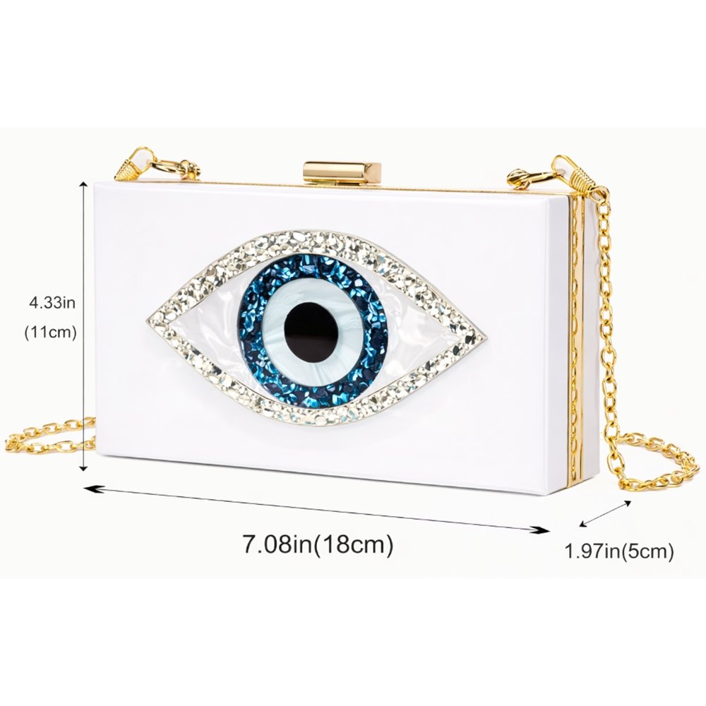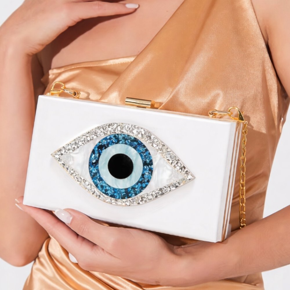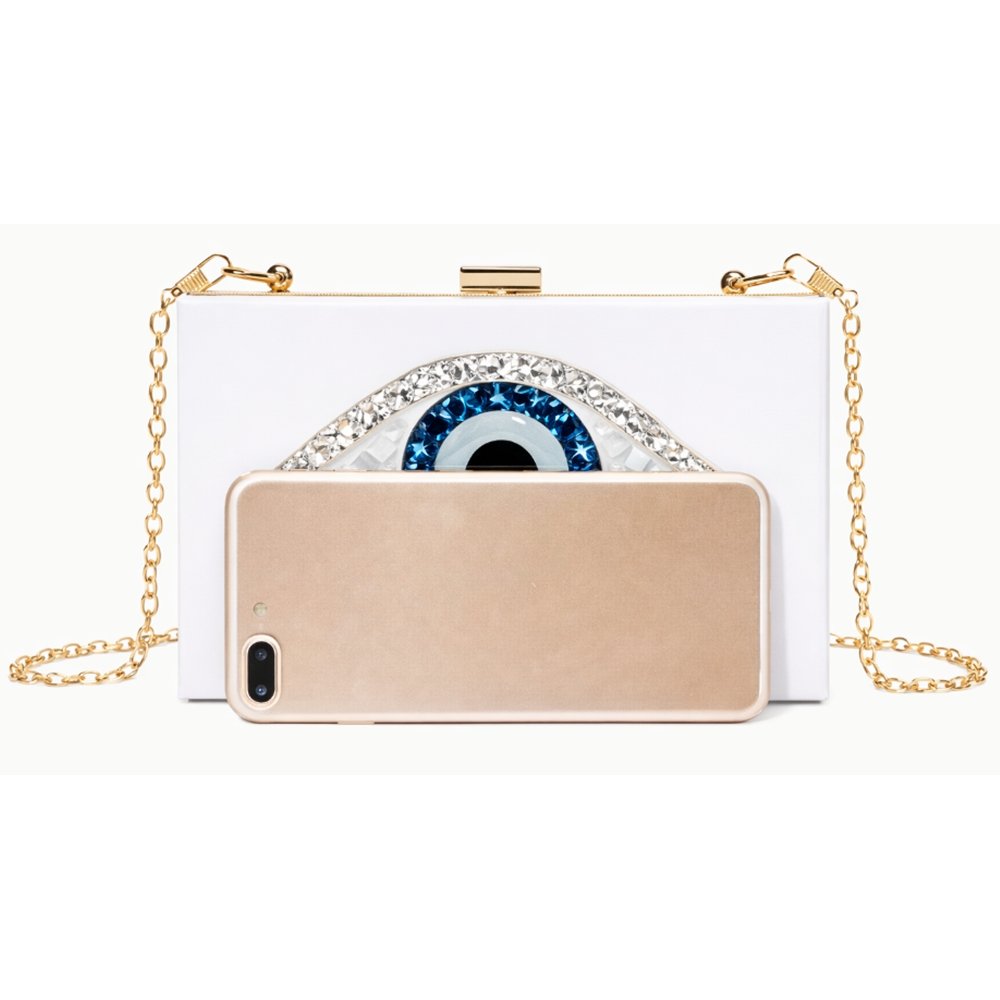 Bolso Clutch Blanco con Ojo Turco de Cristales