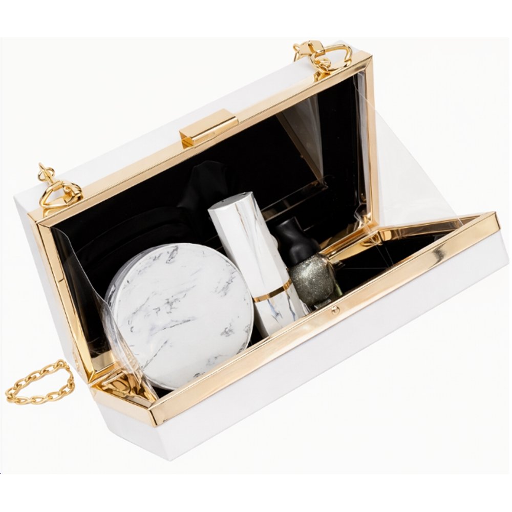 Su estructura rígida permite mantener la forma perfecta, mientras que el cierre metálico dorado garantiza seguridad y comodidad. Incluye una cadena fina dorada que permite llevarlo al hombro o cruzado, adaptándose fácilmente a diferentes estilos y ocasiones. En su interior, ofrece el espacio justo para guardar los imprescindibles: móvil, llaves, labial o pequeños objetos personales.