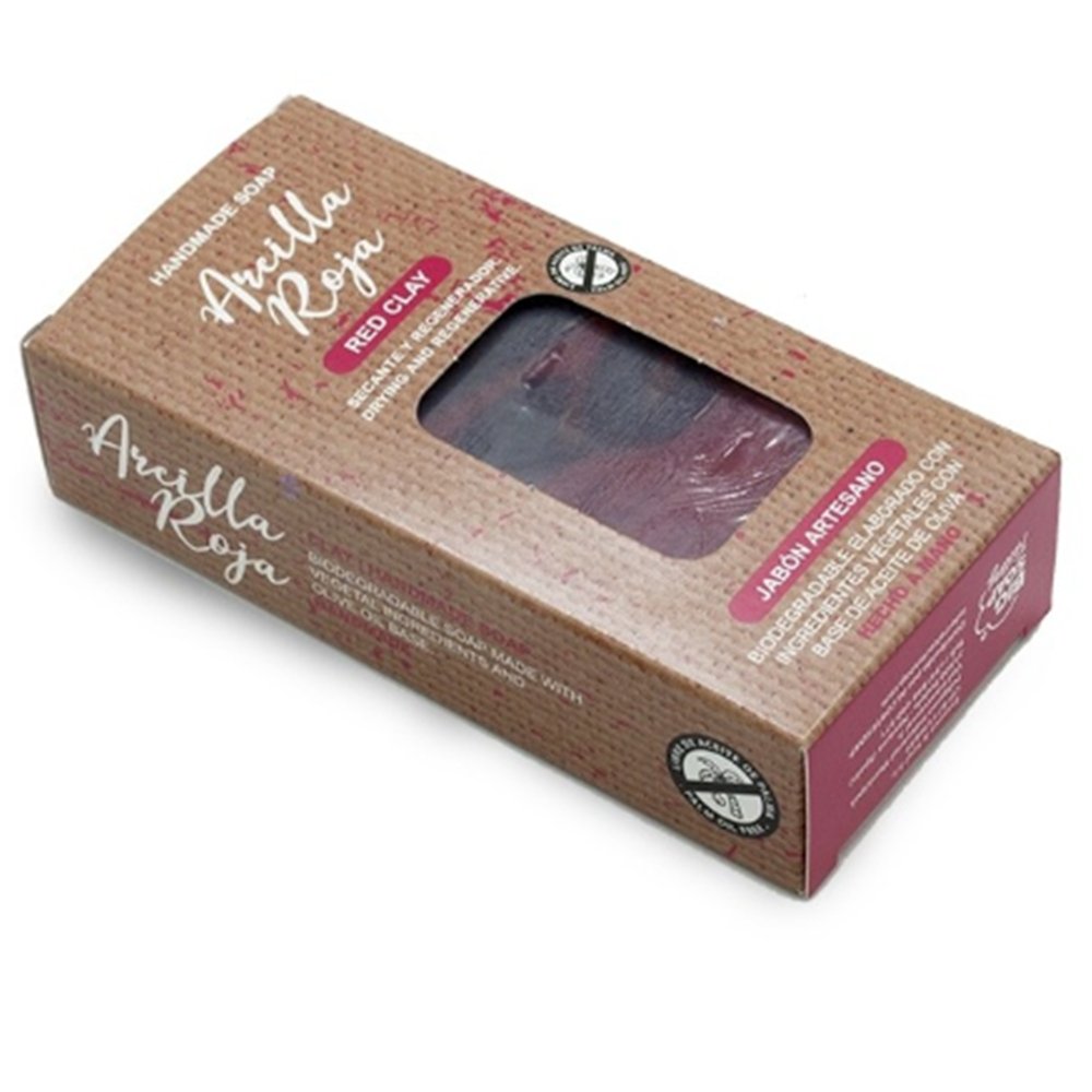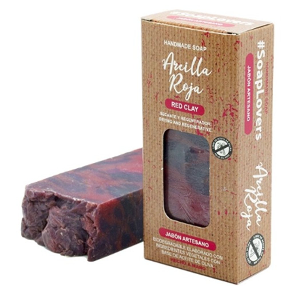 Jabón artesano con arcilla roja y aceite de oliva. Purificante, regenerador y revitalizante. Ideal para piel mixta o grasa.