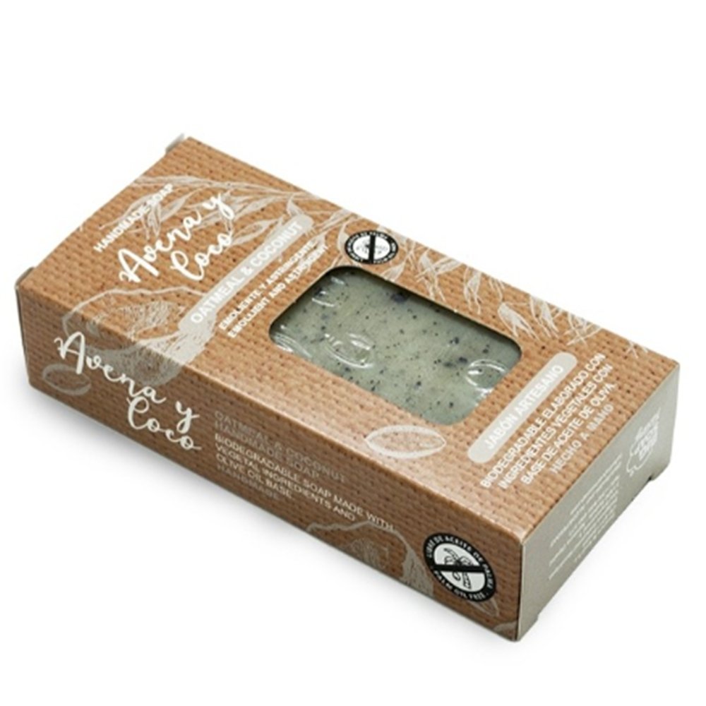 El Jabón Artesano de Aceite de Oliva con Avena y Coco (100 g) está elaborado a mano con ingredientes 100% naturales y vegetales. Su base de aceite de oliva virgen limpia sin dañar la piel, ayuda a mantener la hidratación y aporta una suavidad única.