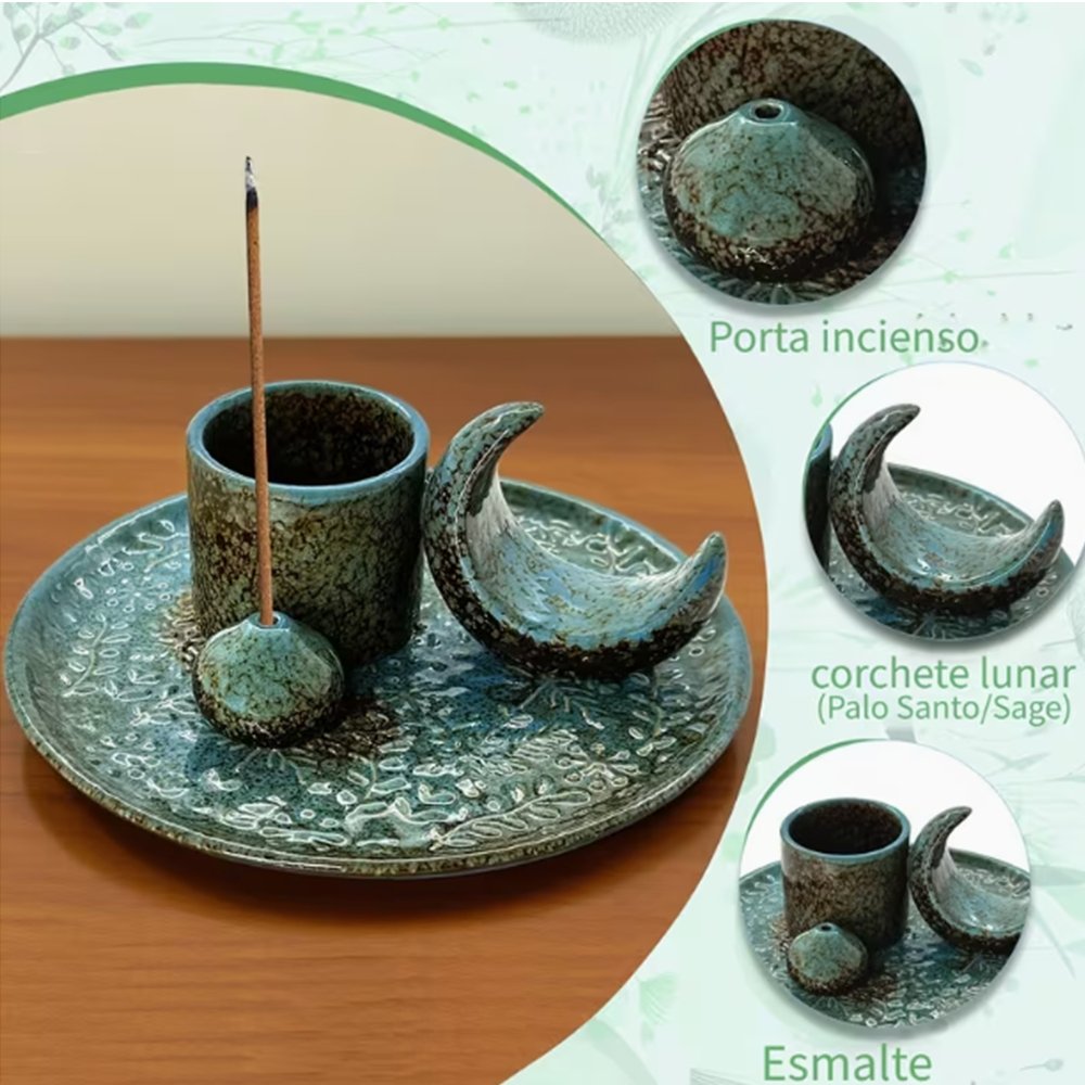 Porta incienso de cerámica 4 en 1 ideal para Meditación, Yoga y Decoración espiritual.